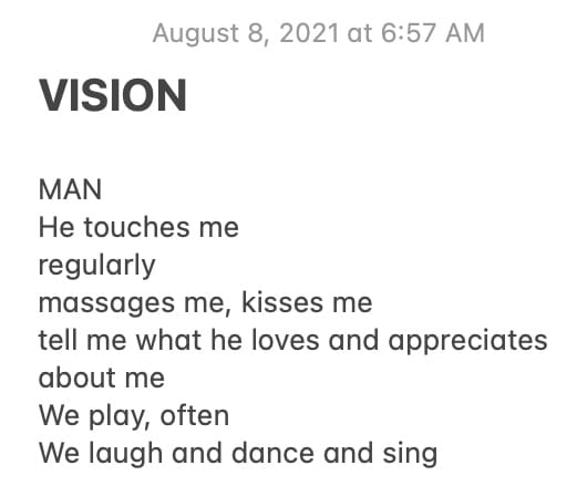 I met that divinely destined man on a summer afternoon, Friday the 13th, seasons ago, and only days after I recorded a very short list of specifics from a vision I had about my forthcoming man...